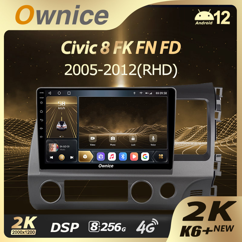 Ownice K6 + 2K 13.3 for Honda Civic 8 FK FN FD 2005 - 2012 Right hand driver Car Radio Video Player Navi GPS Android 12 No 2din