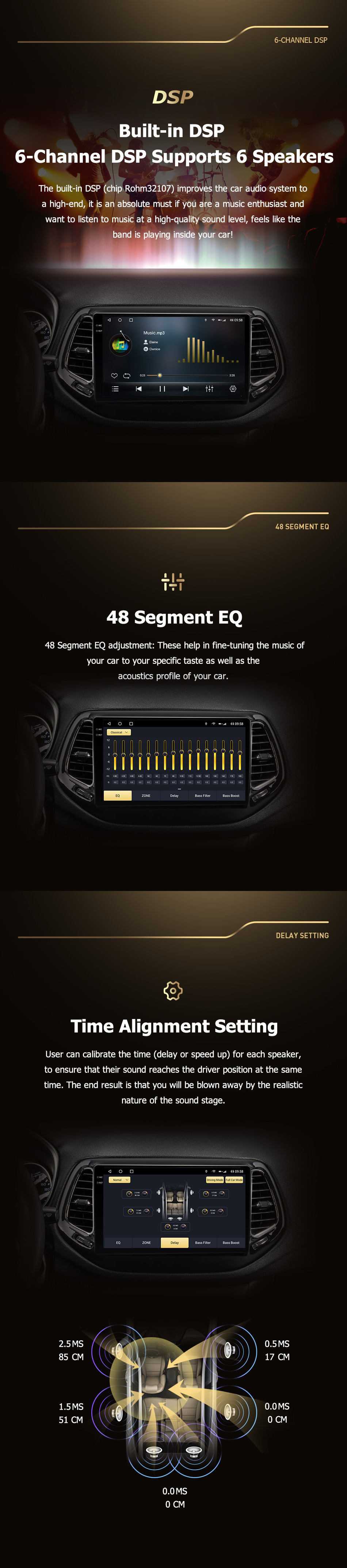 - Built-in GPS,Mobile Phone,MP3 Players,Voice Control,DSP,Carplay,Android Auto,Reversing Input,Split Screen