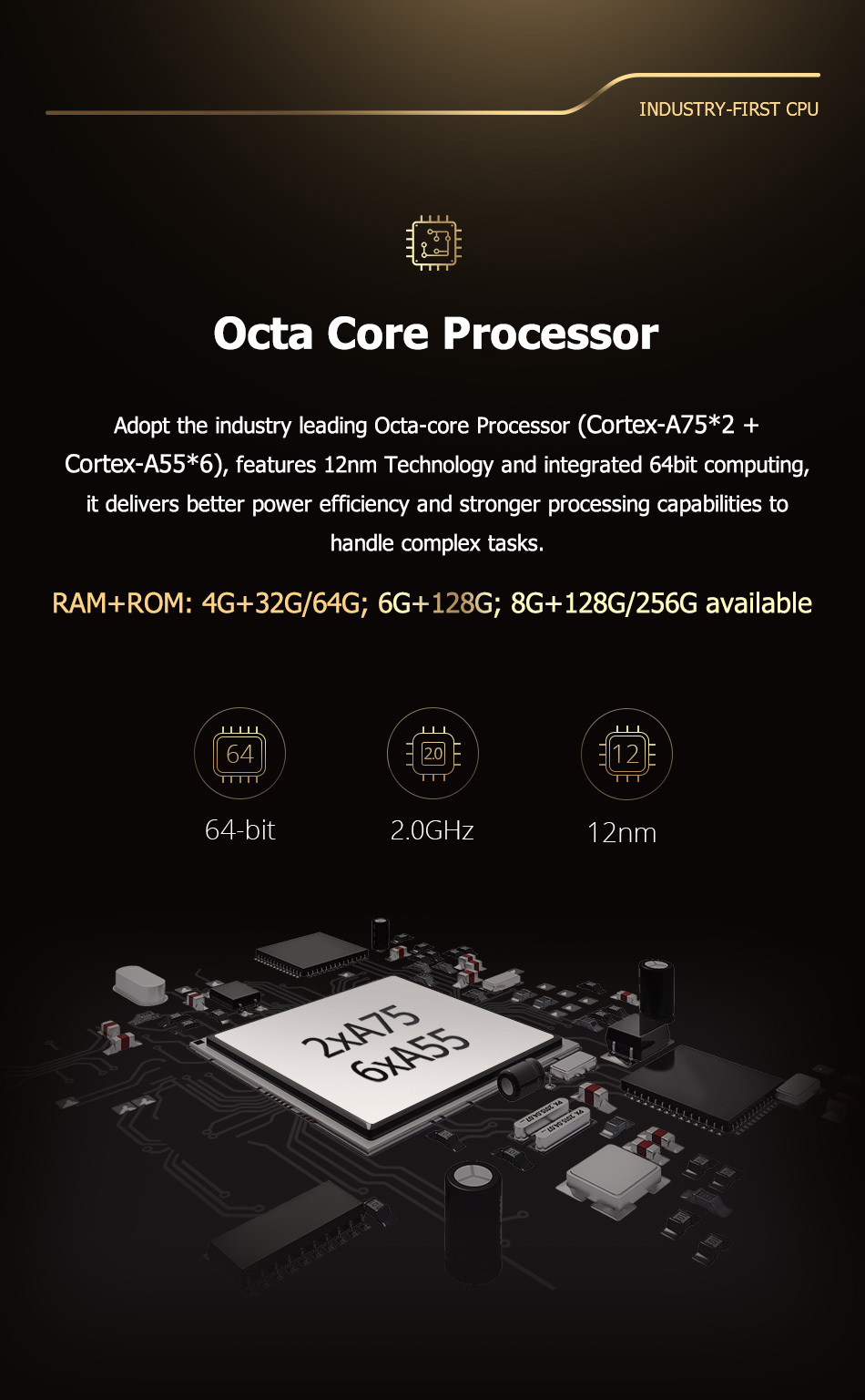 - 8core 64-bit ARM Cortex A55 / A75
