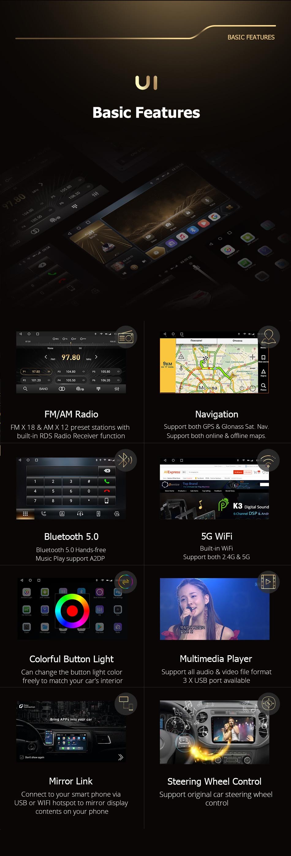 - Built-In Speaker/Microphone,Wifi Function,Support Steering Wheel Control,Support 3G Network,Support 4G Network