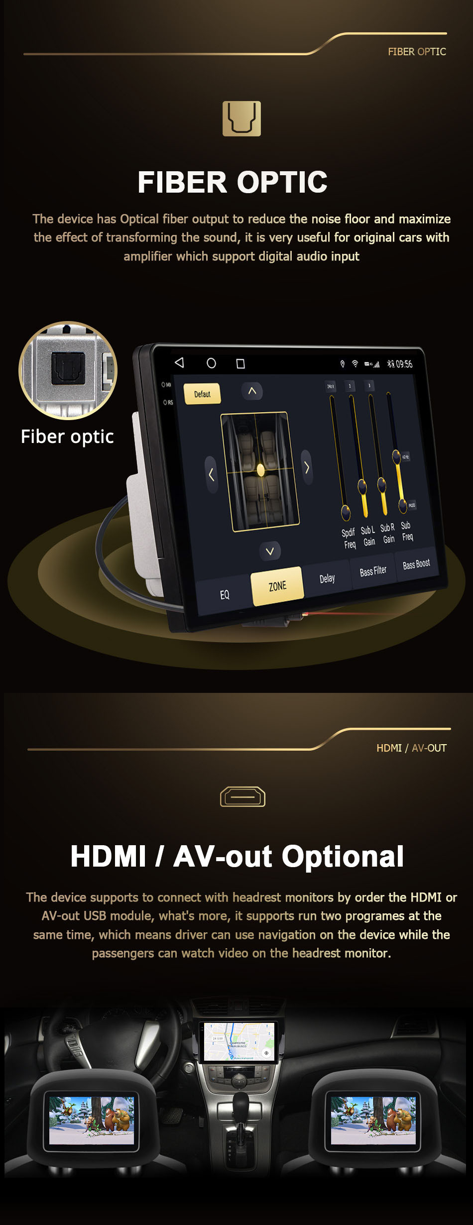 - Built-in GPS,Mobile Phone,MP3 Players,Voice Control,DSP,Carplay,Android Auto,Reversing Input,Split Screen